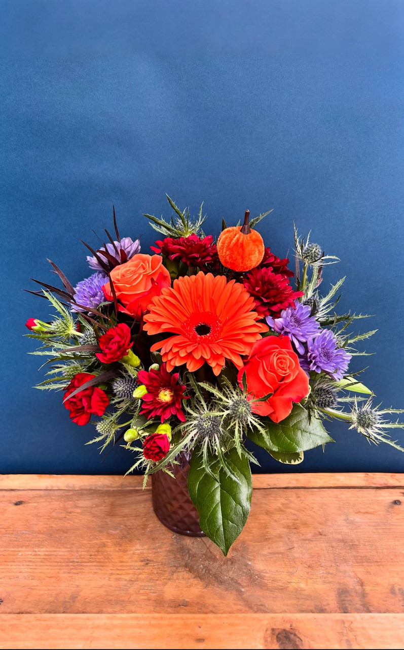 "The flowers are absolutely beautiful. I wish the roses weren’t so fully opened as I suspect they won’t last long. One reason I went directly with a local florist not far from my sister’s house is because I thought I would get exactly what I chose. So often when I’ve ordered with a 1-800-Flowers or the like, items are oftentimes substituted with something other than what I chose. In this case I actually chose an arrangement based on the vase, which had hummingbirds on it. My sister loves hummingbirds and I knew they would put a smile on her face. However what she got was a plain purple vase, no hummingbirds. While it was a pretty enough vase, it wasn’t what I was hoping to get. I am deducting one star for that reason.."